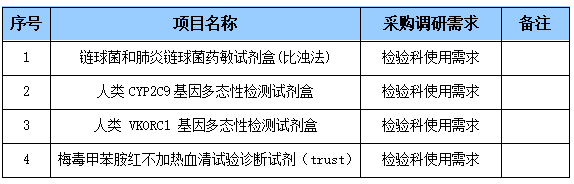 为便于供应商及时了解链球菌和肺炎链球菌药敏试剂盒(比浊法)等项目采购调研信息,现将泰达国际心血管病医院调研信息公开如下: