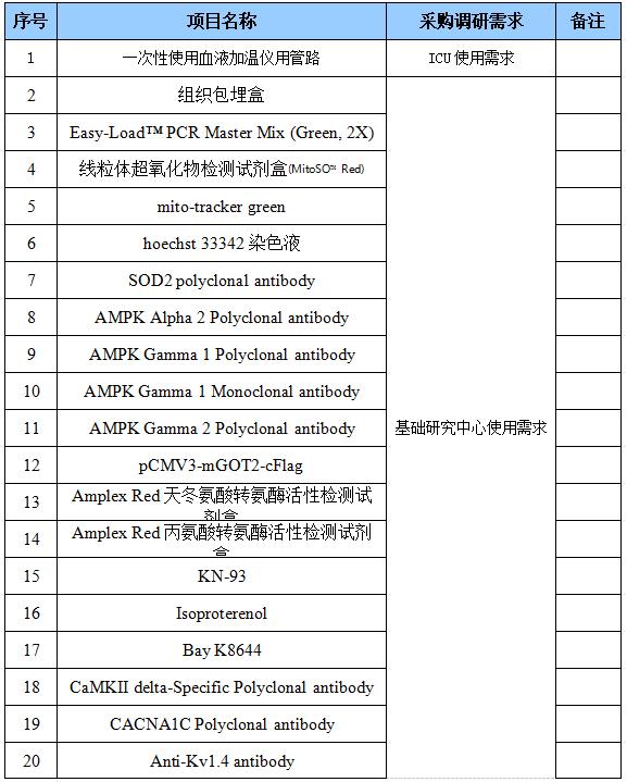 为便于供应商及时了解一次性使用血液加温仪用管路等项目采购调研信息,现将泰达国际心血管病医院调研信息公开如下: