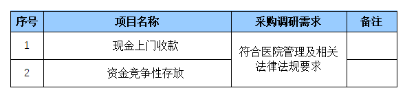 为便于报名单位及时了解现金上门收款以及资金竞争性存放项目调研信息,现将泰达国际心血管病医院调研信息公开如下: