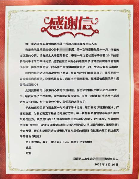 在泰达国际心血管病医院(简称泰心医院)的门诊诊室里,35岁来自青海省的李先生说出这句话时,眼中含泪。而坐在他对面的外一科主任路万里,正是20年前为他做过心脏手术的医生。