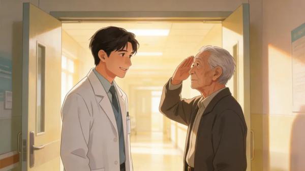 那一刻,连日加班的疲惫烟消云散,眼眶骤然发热。这记军礼,没有华丽的辞藻,并非厚重的锦旗,却是我从医以来收到的最珍贵的认可。它是一位老兵以自己最庄重的方式,诉说着心底的感激。它也让我明白,医者的付出,患者都看在眼里、记在心里。